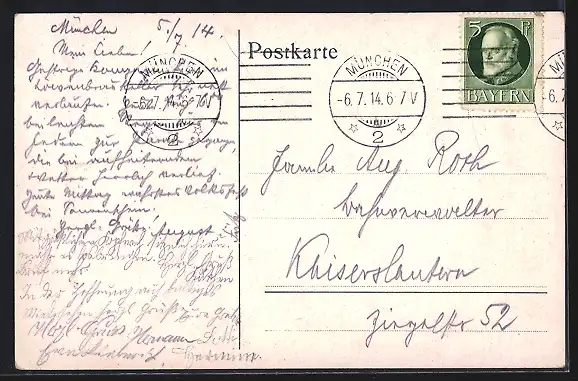 gelaufen 1914, guter Zustand