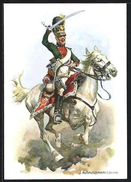 Künstler-AK Anton Hoffmann - München: Uniformen des bayer. 2. Chevauleger-Regiment Taris, Chevauleger mit Schwert 1811