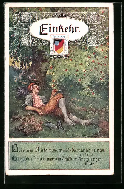 Künstler-AK Anton Marussig: Einkehr, Mann liegt unter einem Apfelbaum