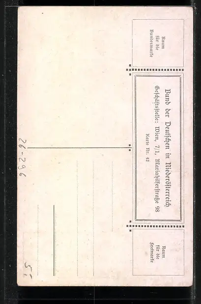 Personenbezogene Daten auf der Rückseite der Karte wurden durch blauen Textmarker unkenntlich gemacht. Die blauen Stellen sind auf die Vorderseite durchgeweicht und wirken sich negativ auf das Postkartenfoto aus