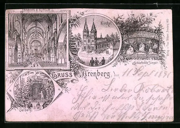 Künstler-AK Arenberg, Kirche, Oelberg, Schlafende Jünger