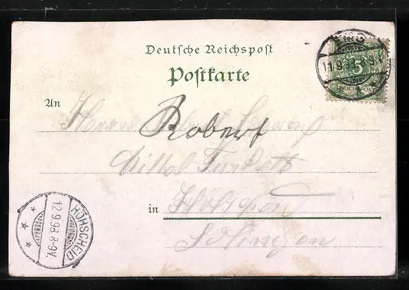 alte Ansichtskarte, gelaufen 1898, guter Zustand