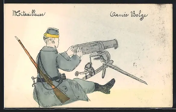 Künstler-AK Armée belge, Mitrailleuse