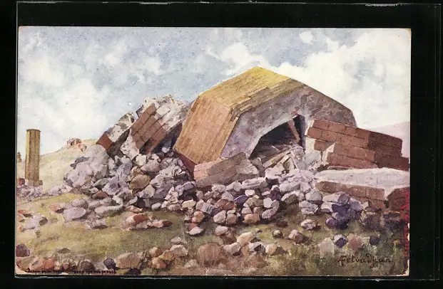 Künstler-AK Armenien, Zerstörtes Gebäude