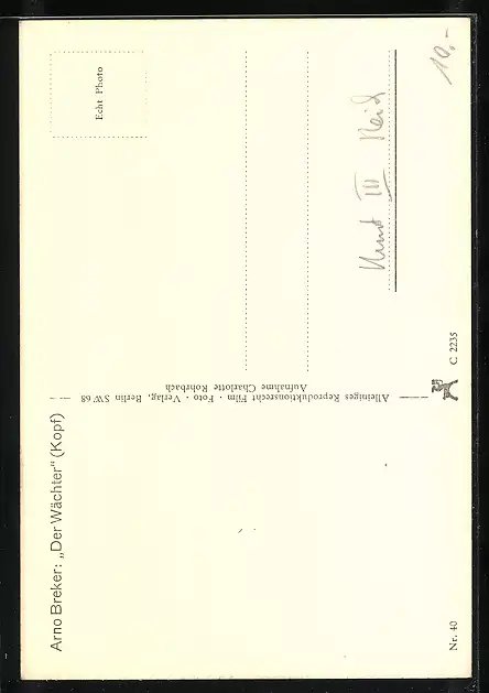 Künstler-AK Arno Breker: Ausschnitt der Statue Der Wächter