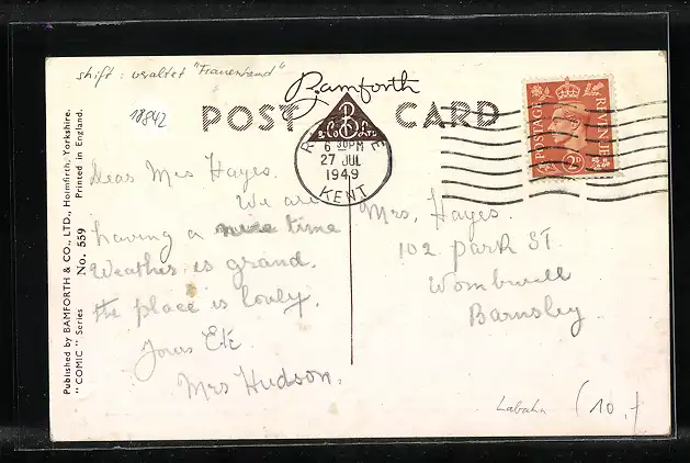 alte Ansichtskarte, gelaufen 1949, guter Zustand
