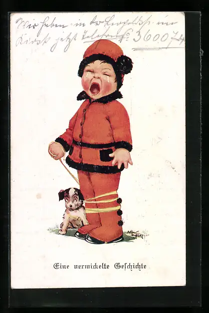 Künstler-AK Arthur Butcher: Weinernder Junge mit einem Hund
