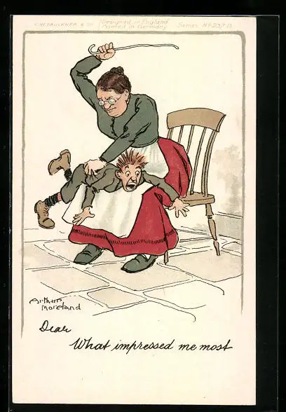 Künstler-AK Arthur Moreland: Mutter versohlt ihrem Filius den Allerwertesten