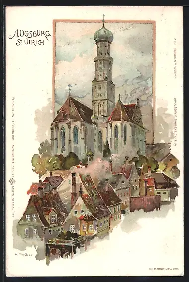 Künstler-AK Augsburg, Blick auf St. Ulrich