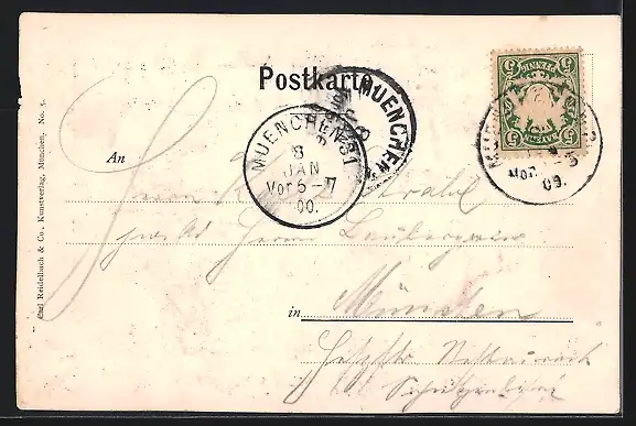 alte Ansichtskarte, gelaufen 1900, kl. Randschaden re. oben, guter Zustand