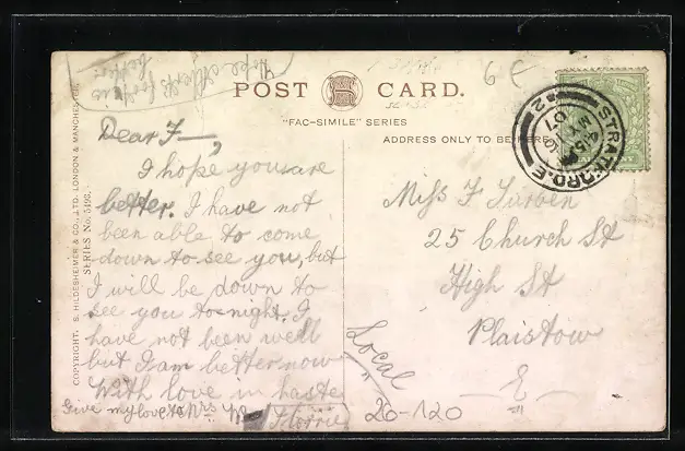 gelaufen 1907, Ecken bestoßen, guter Zustand