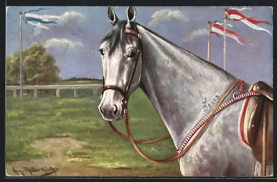 Künstler-AK August Müller - München: Gesattelter Schimmel
