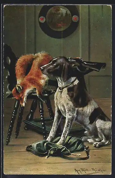 Künstler-AK August Müller - München: Jagdhund mit Fuchs
