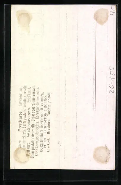 alte Ansichtskarte, ungelaufen, rückseitig Klebe- und Papierreste, guter Zustand