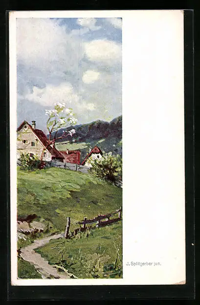 Künstler-AK August Splitgerber: Landhäuser im Tal
