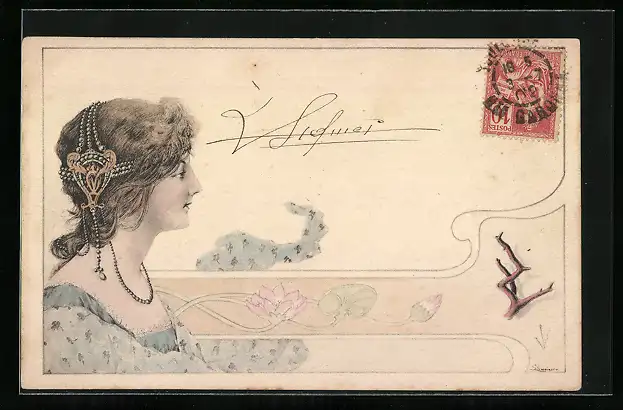 Künstler-AK B. Patella: Junge Frau mit Perlenkette