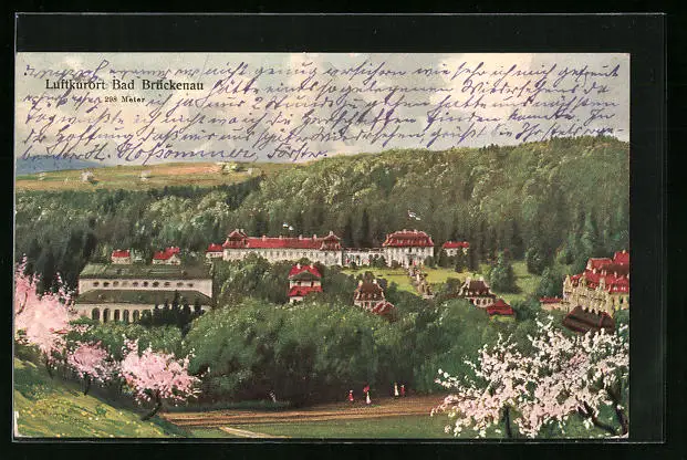 Künstler-AK Bad Brückenau, Totalansicht im Frühling