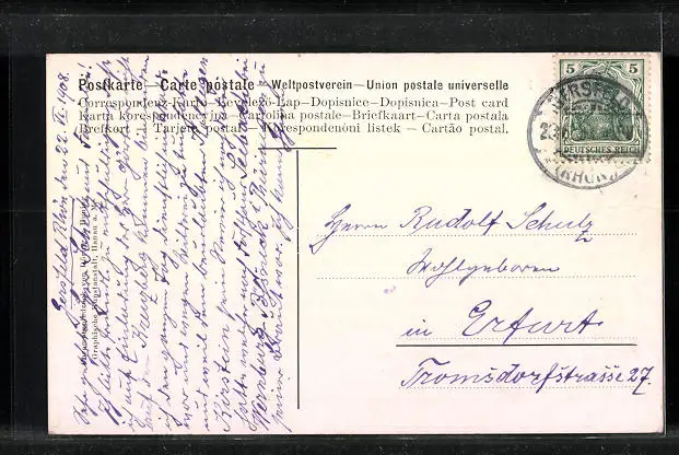 alte Ansichtskarte, gelaufen, Bugspur li. oben, guter Zustand