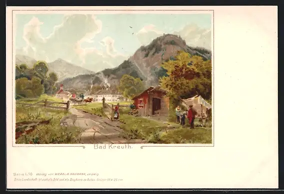 Künstler-AK Bad Kreuth, Ortspartie mit Pferdewagen
