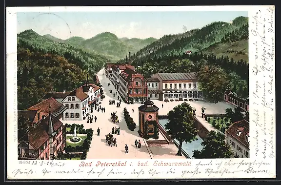 Künstler-AK Bad Petersthal i. bad. Schwarzwald, Ortsansicht aus der Vogelschau