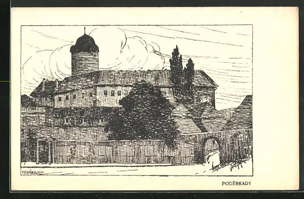 Künstler-AK Bad Podiebrad / Podebrady, Teilansicht