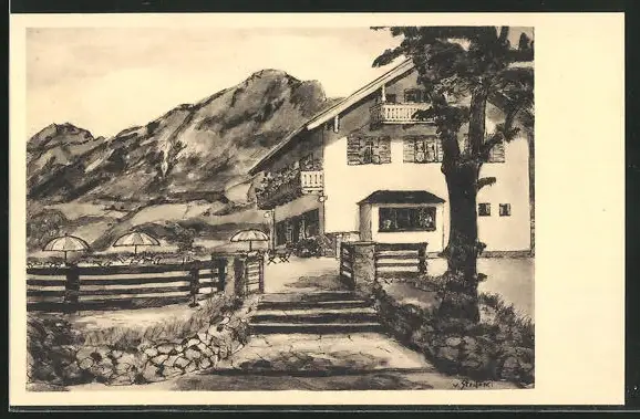 Künstler-AK Bad Reichenhall, Café Dreher am Hessing