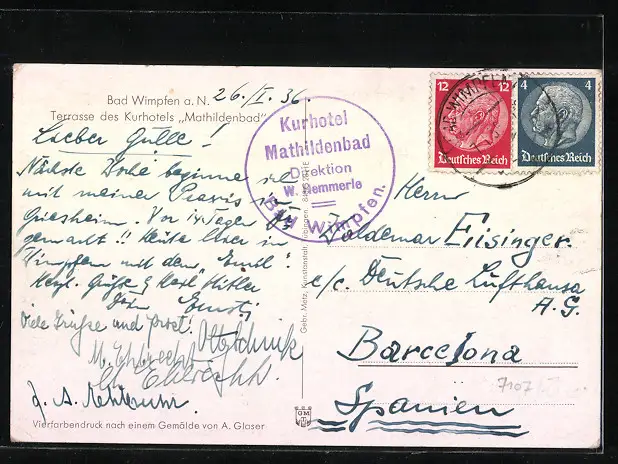 Künstler-AK Bad Wimpfen a. N., Kurhotel Mathildenbad, Terrasse