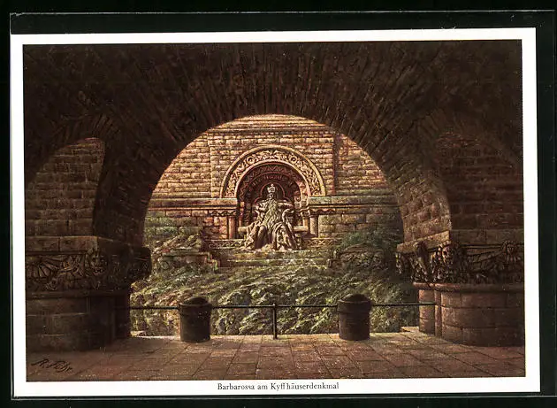 Künstler-AK Barbarossa am Kyffhäuserdenkmal