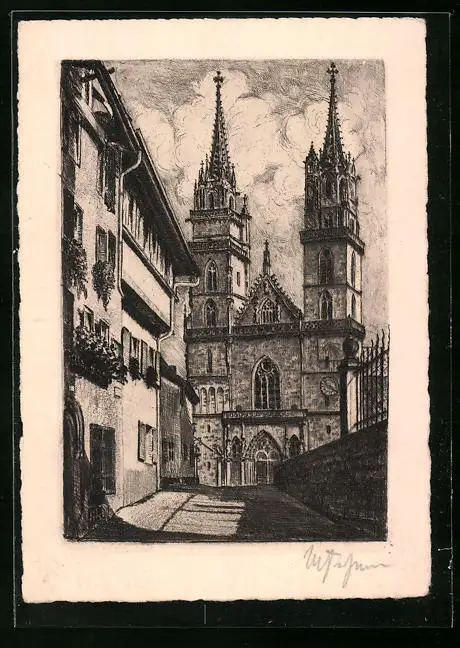 Künstler-AK Basel, Blick zum Münster