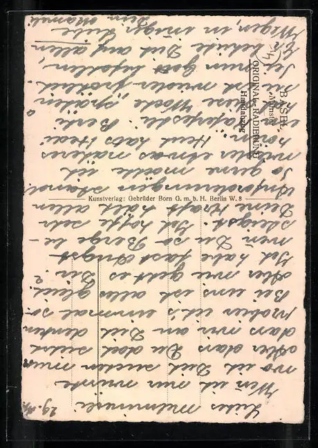 Personenbezogene Daten auf der Rückseite der Karte wurden durch blauen Textmarker unkenntlich gemacht. Die blauen Stellen sind auf die Vorderseite durchgeweicht und wirken sich negativ auf das Postkartenfoto aus