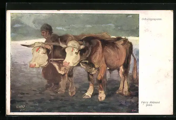 Künstler-AK Bauer mit Ochsengespann