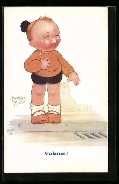 Künstler-AK Beatrice Mallet: Verlassen!, Weinender Junge