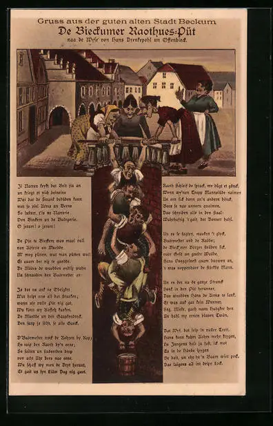 Künstler-AK Beckum /Westf., De Bieckumer Raothues-Püt