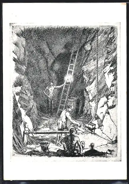 Künstler-AK Bergmänner beim Bohren unter Tage