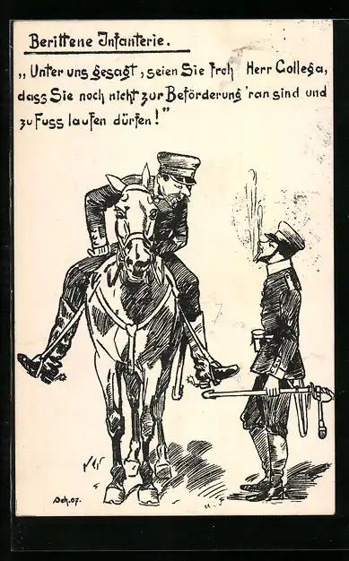 Künstler-AK Berittene Infanterie, Soldatenhumor