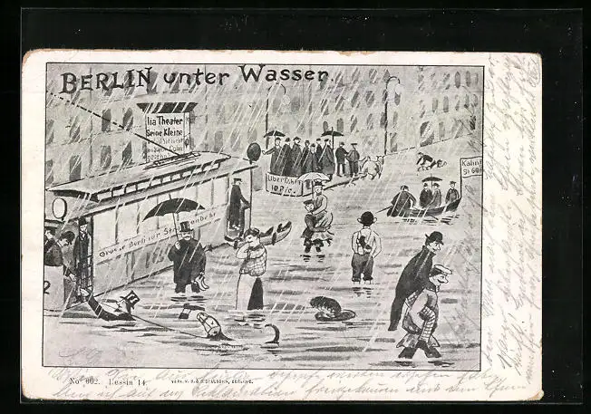 Künstler-AK Berlin, Berlin unter Wasser nach einem Unwetter