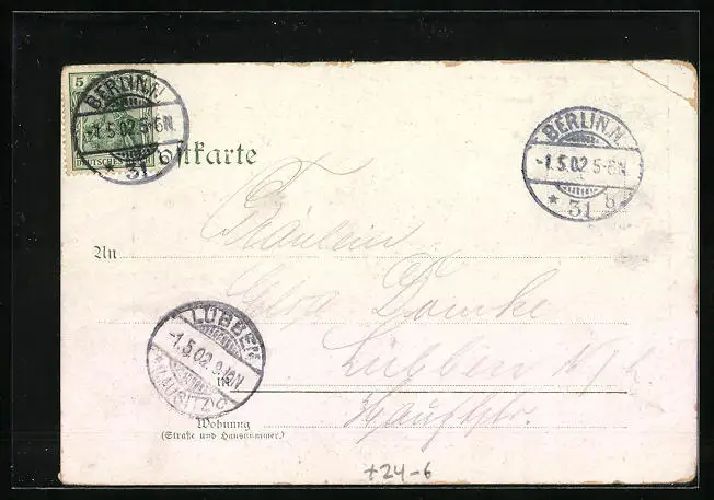gelaufen 1902, Abriebspur oben, Eckknick oben li., guter Zustand