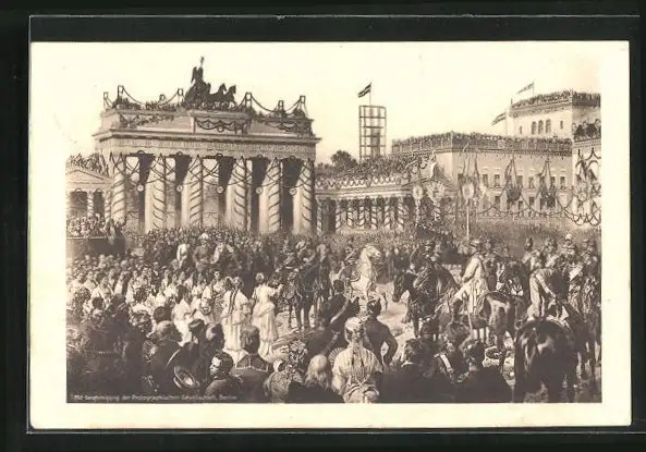 Künstler-AK Berlin, Einzug der Truppen durch das Brandenburger Tor