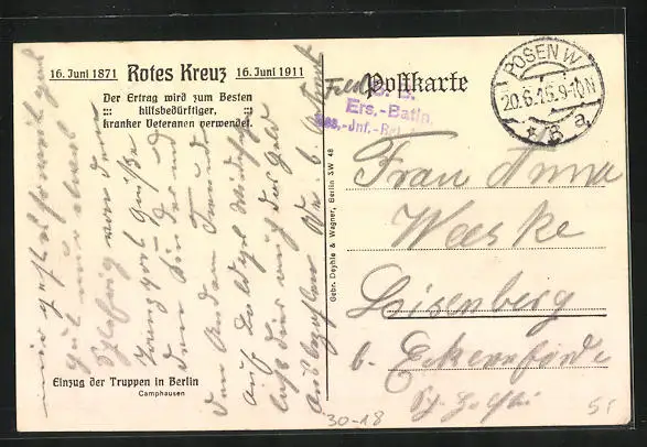 alte Ansichtskarte, gelaufen als Feldpost 1915, guter Zustand