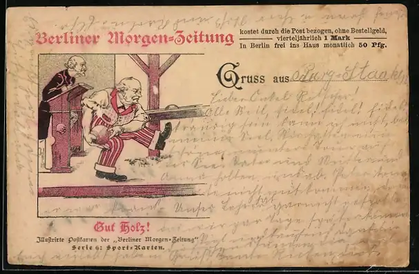 Künstler-AK Berlin, Mann beim Kegeln, Berliner Morgen-Zeitung