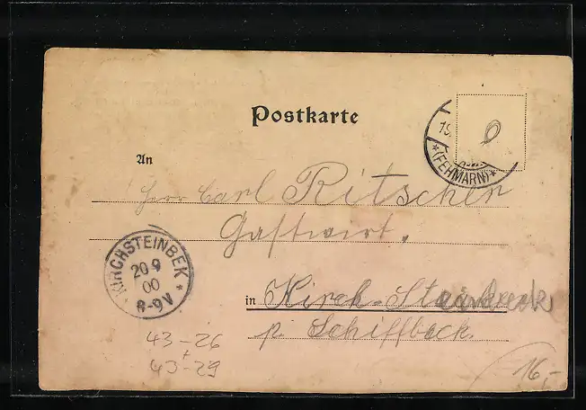 alte Ansichtskarte, gelaufen 1900, Briefmarke entfernt, guter Zustand