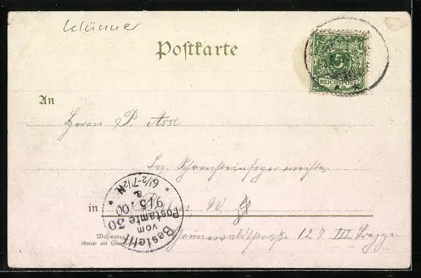 alte Ansichtskarte, gelaufen 1900, Einriss u. Eckknick oben re., Eckknick unten re., guter Zustand