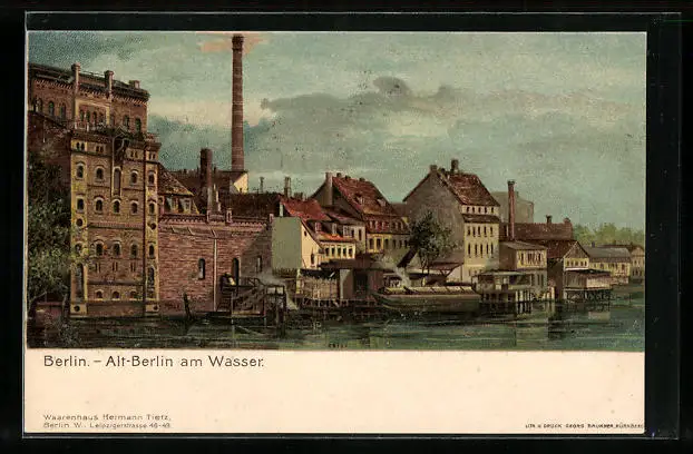 Künstler-AK Berlin, Szene in der Altstadt am Wasser