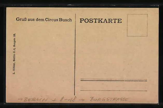 Künstler-AK Berlin, Zirkus Busch in der Burgstrasse
