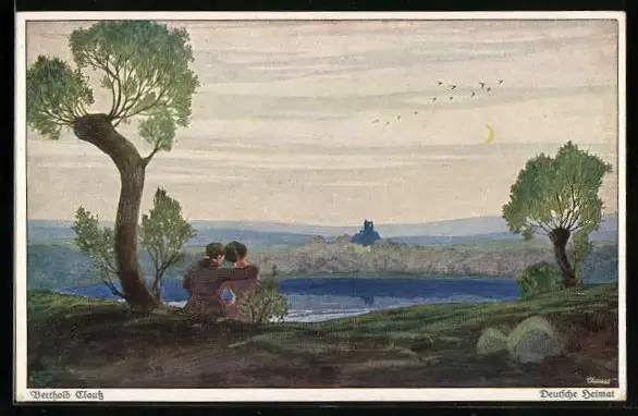 Künstler-AK Berthold Clauss: Verliebtes Paar sitzt an einem Seeufer