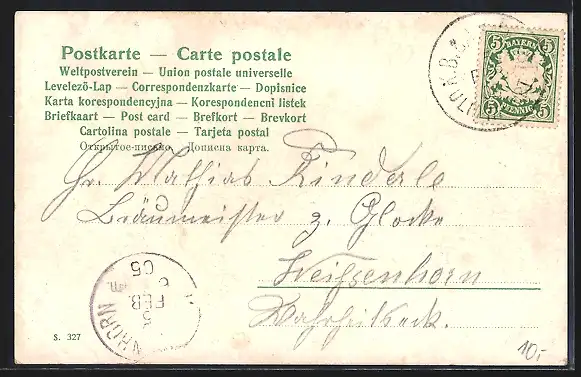 alte Ansichtskarte, gelaufen 1905, guter Zustand