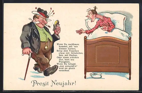 Künstler-AK Betrunkener kommt nach Hause, frauenfeindlicher Humor