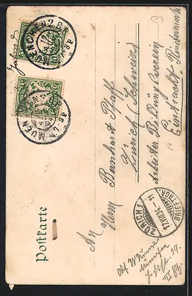 alte Ansichtskarte, gelaufen 1904, guter Zustand