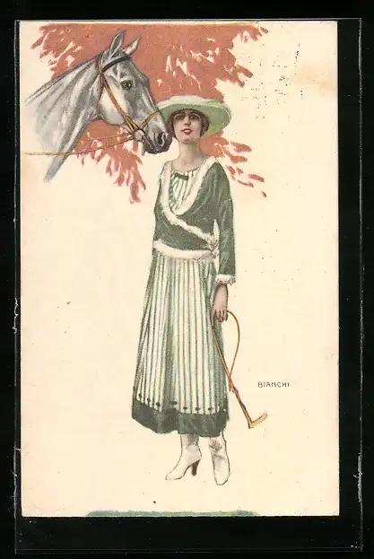Künstler-AK Bianchi: Dame mit weissem Pferd