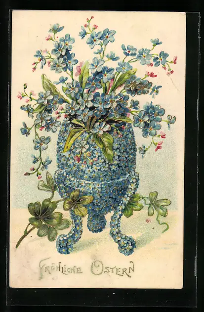 Künstler-AK Blaue Blumen erblühen in einer Blumenvase, Blumenbild